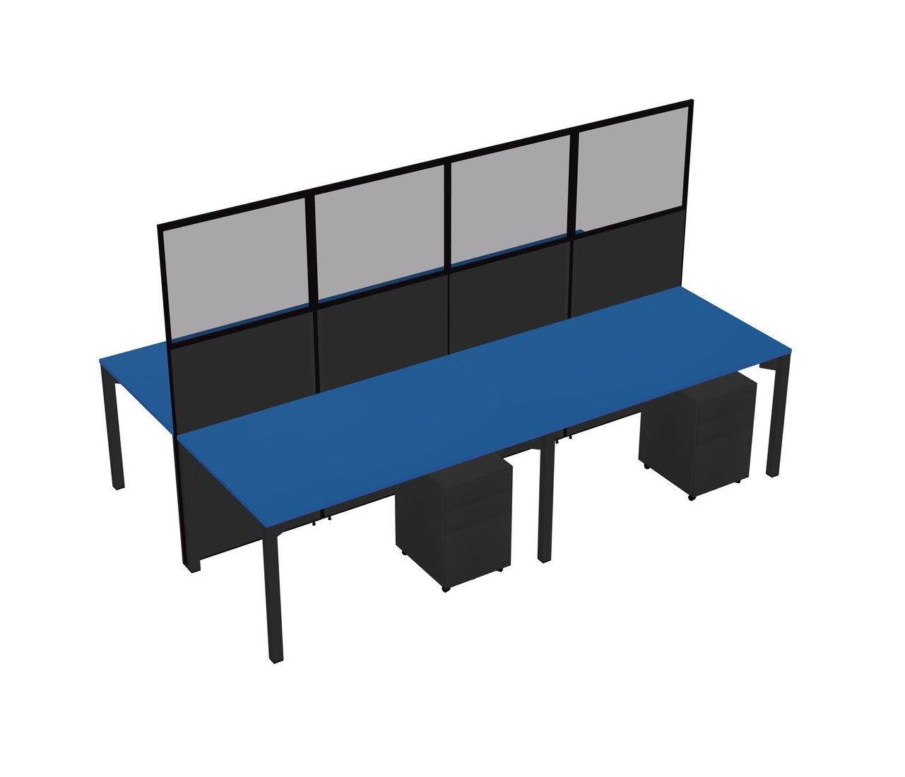 Prism Blue Shared Rectangular Office Cubicle Panel System With Mobile Drawers For 4 Persons