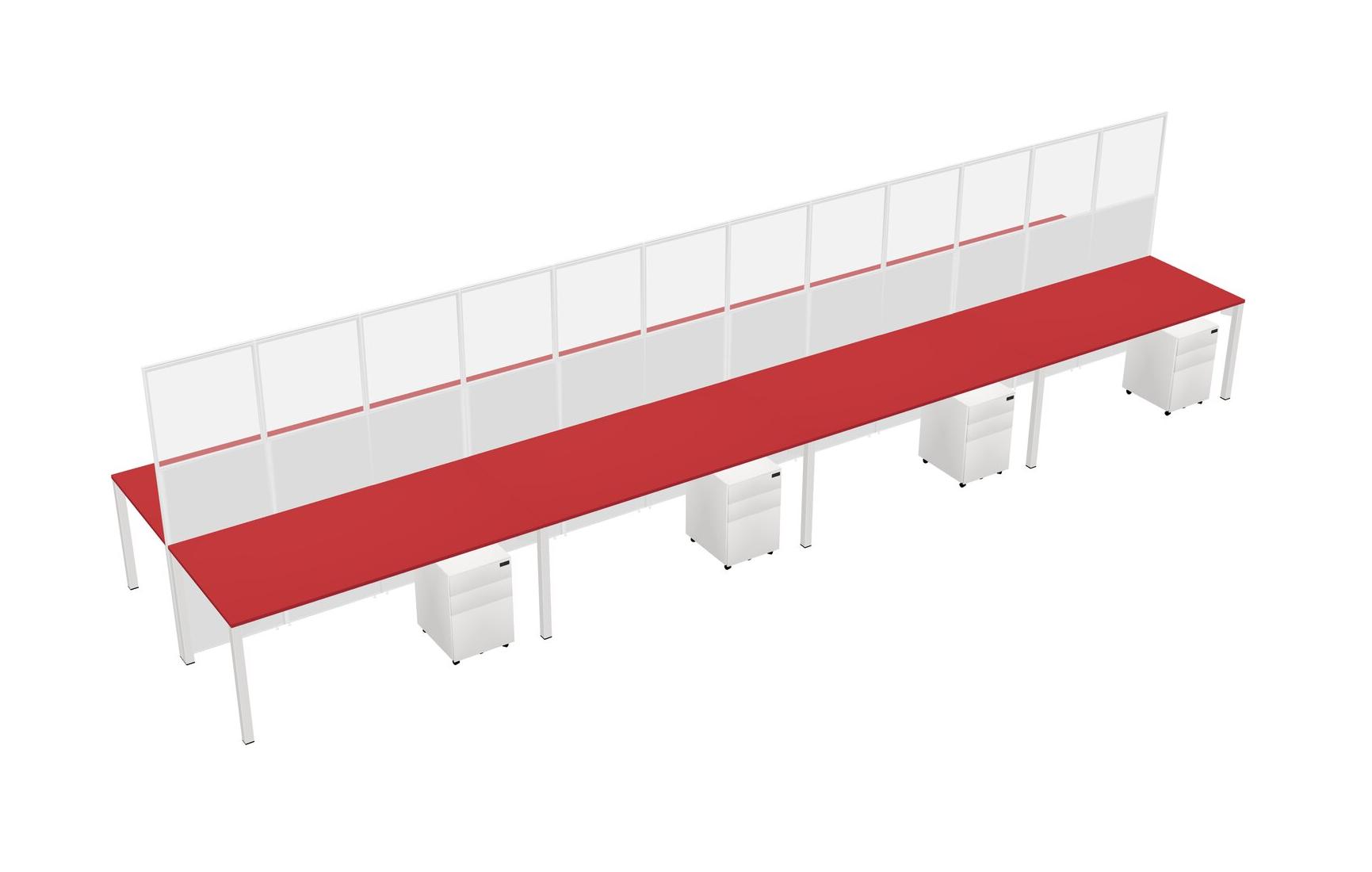 Prism Red Shared Rectangular Office Cubicle Panel System With Mobile Drawers For 8 Persons