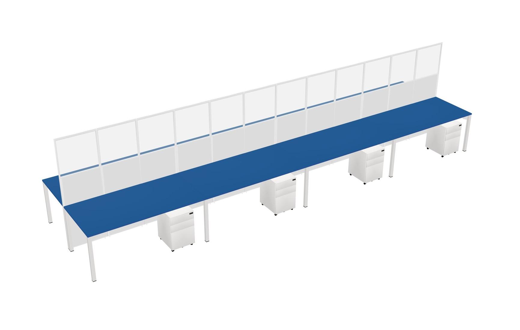 Prism Blue Shared Rectangular Office Cubicle Panel System With Mobile Drawers For 8 Persons
