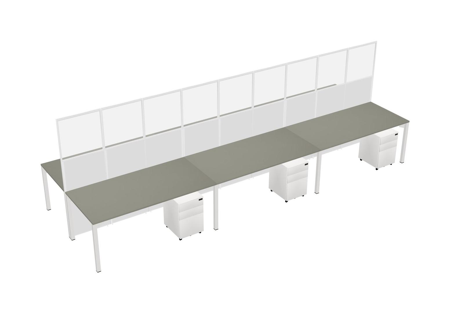 Grey Shadows Shared Rectangular Office Cubicle Panel System With Mobile Drawers For 6 Persons