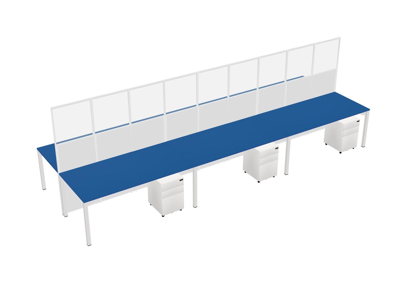 Prism Blue Shared Rectangular Office Cubicle Panel System With Mobile Drawers For 6 Persons