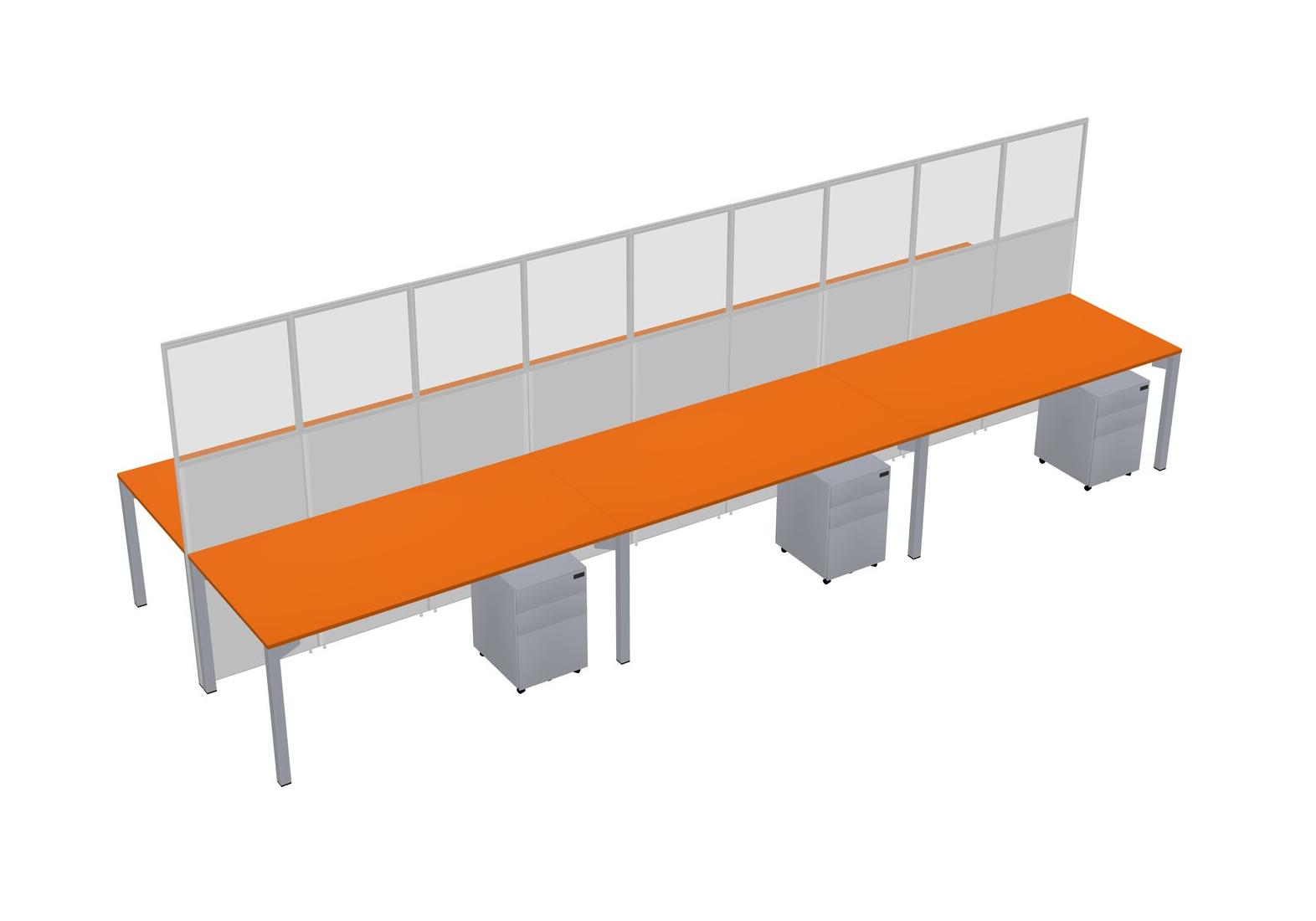 Orange Shared Rectangular Office Cubicle Panel System With Mobile Drawers For 6 Persons
