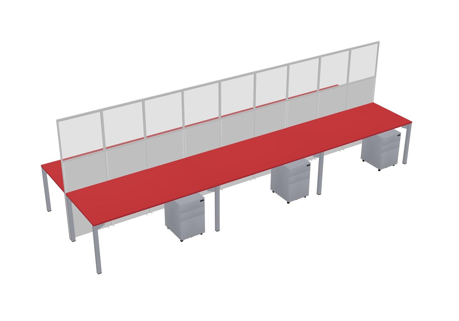 Prism Red Shared Rectangular Office Cubicle Panel System With Mobile Drawers For 6 Persons