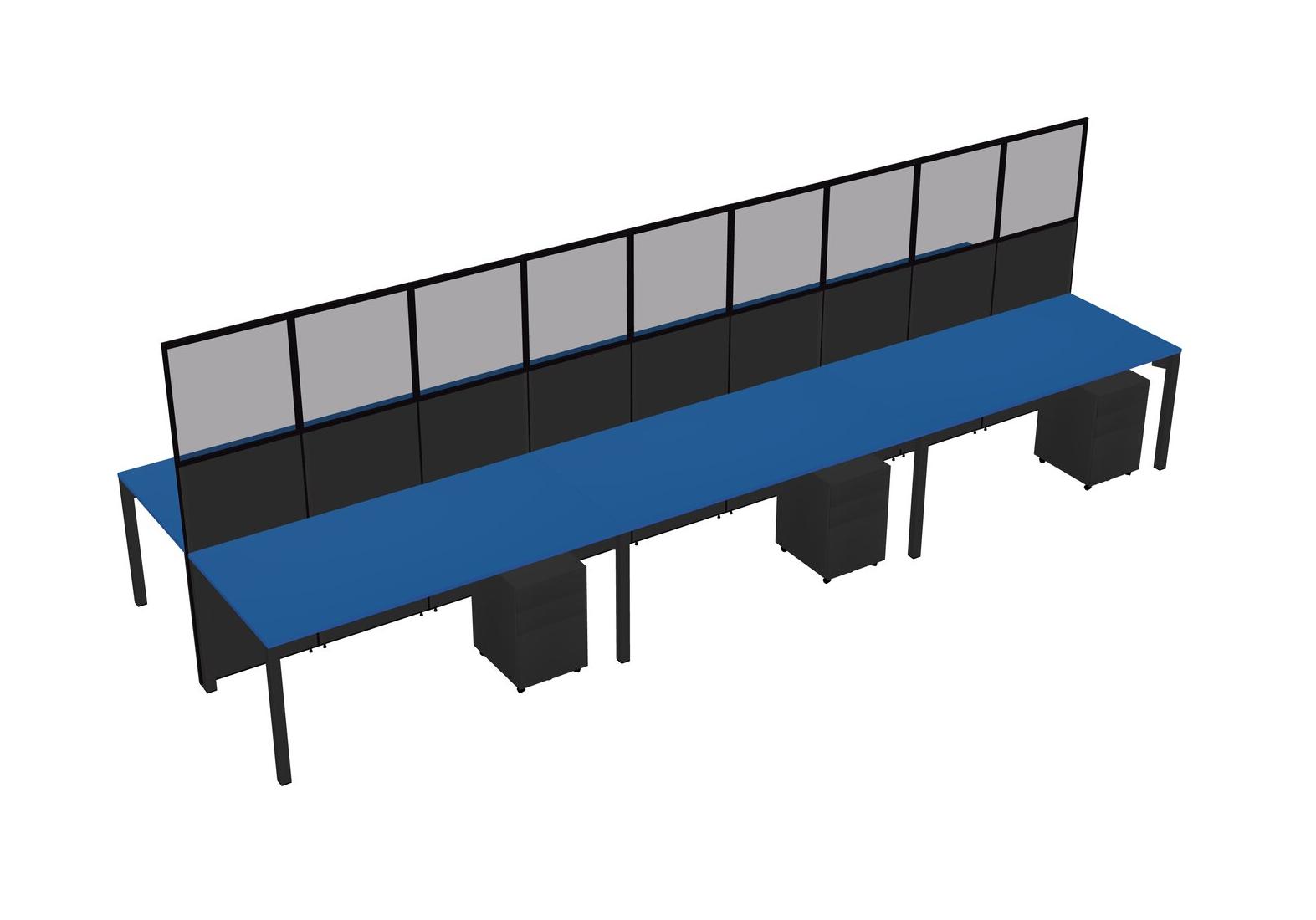 Prism Blue Shared Rectangular Office Cubicle Panel System With Mobile Drawers For 6 Persons