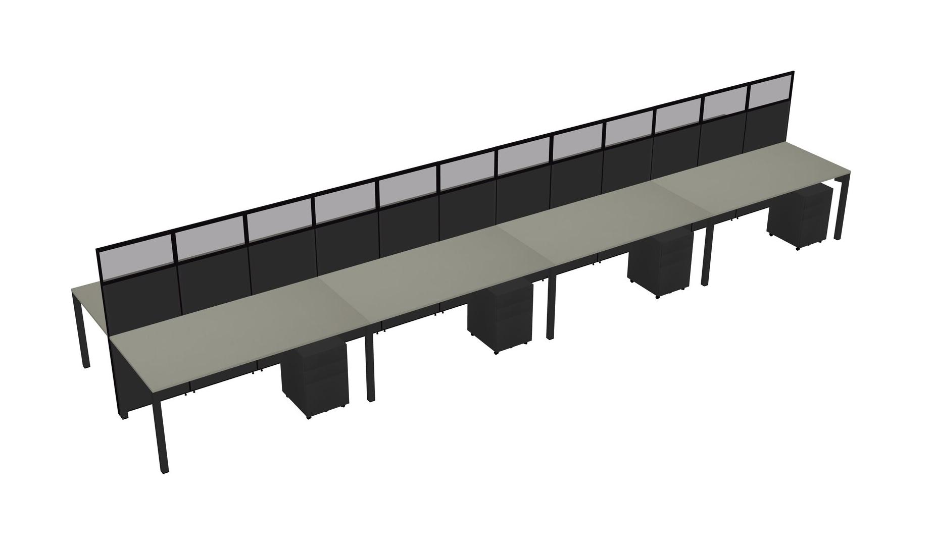 Grey Shadows Shared Rectangular Office Cubicle Panel System With Mobile Drawers For 8 Persons