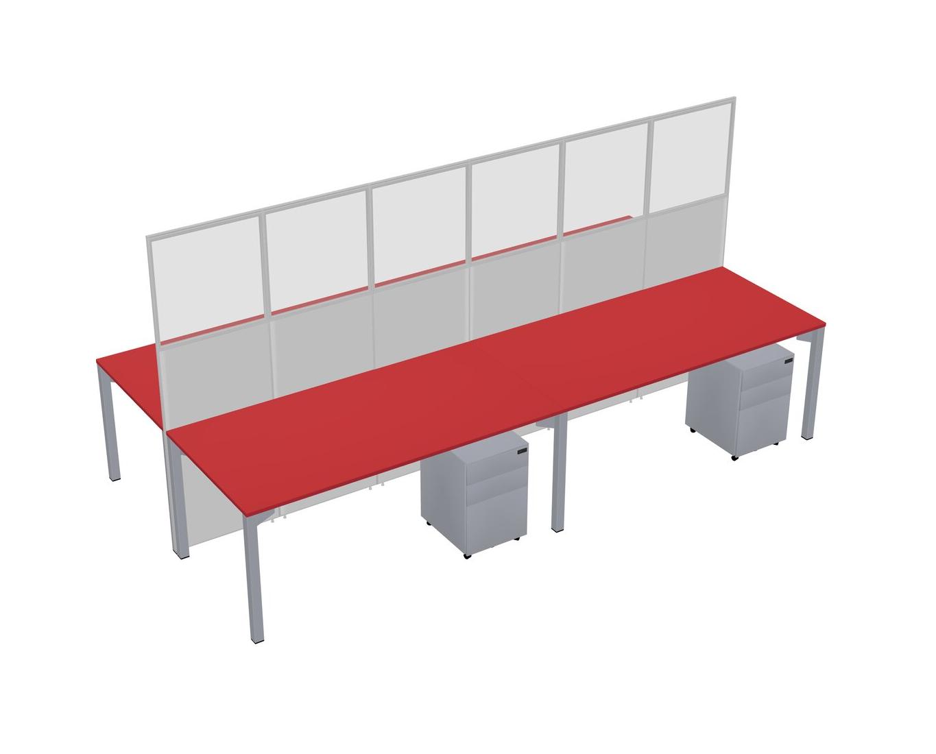 Prism Red Shared Rectangular Office Cubicle Panel System With Mobile Drawers For 4 Persons
