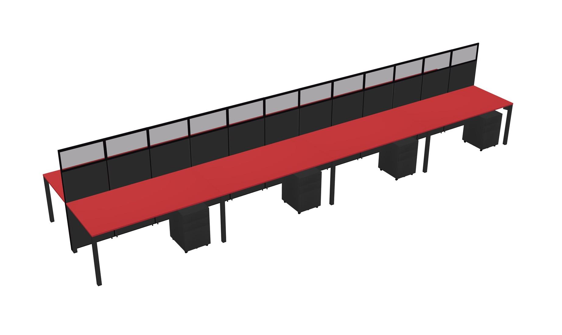 Prism Red Shared Rectangular Office Cubicle Panel System With Mobile Drawers For 8 Persons