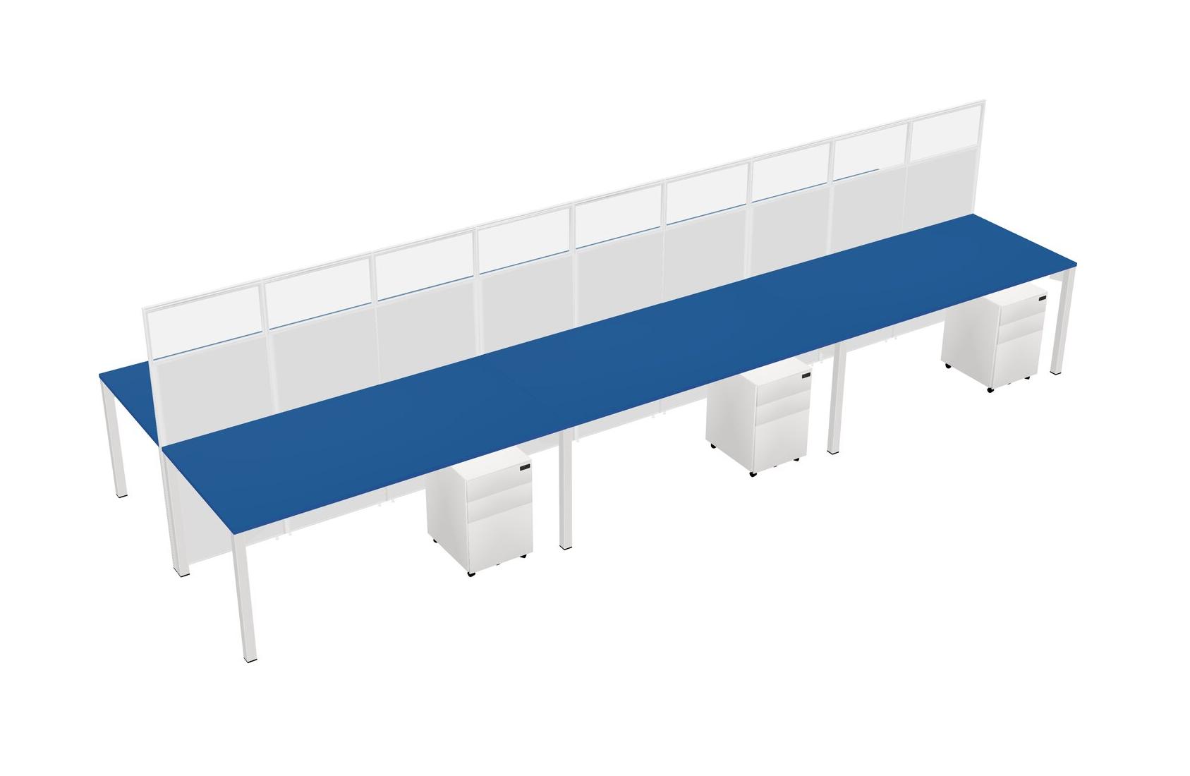 Prism Blue Shared Rectangular Office Cubicle Panel System With Mobile Drawers For 6 Persons