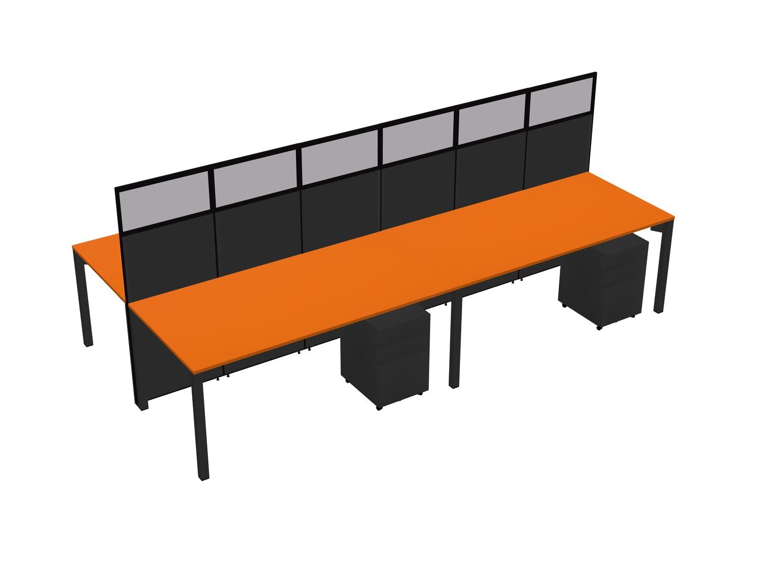 Orange Shared Rectangular Office Cubicle Panel System With Mobile Drawers For 4 Persons