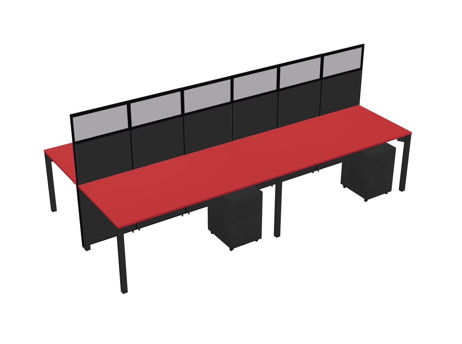 Prism Red Shared Rectangular Office Cubicle Panel System With Mobile Drawers For 4 Persons