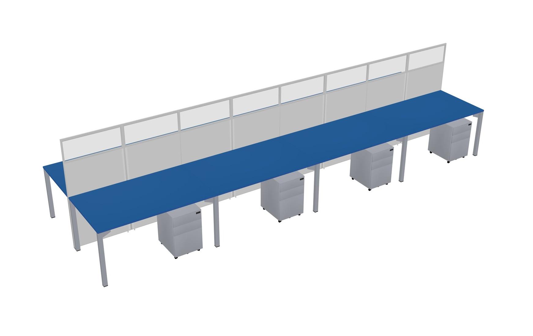 Prism Blue Shared Rectangular Office Cubicle Panel System With Mobile Drawers For 8 Persons