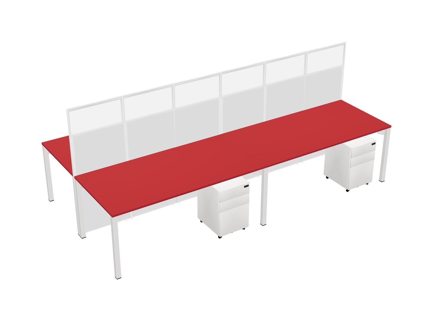 Prism Red Shared Rectangular Office Cubicle Panel System With Mobile Drawers For 4 Persons