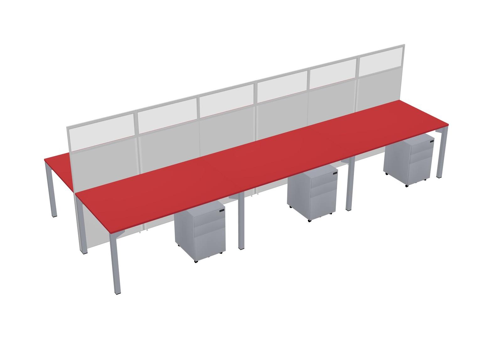 Prism Red Shared Rectangular Office Cubicle Panel System With Mobile Drawers For 6 Persons