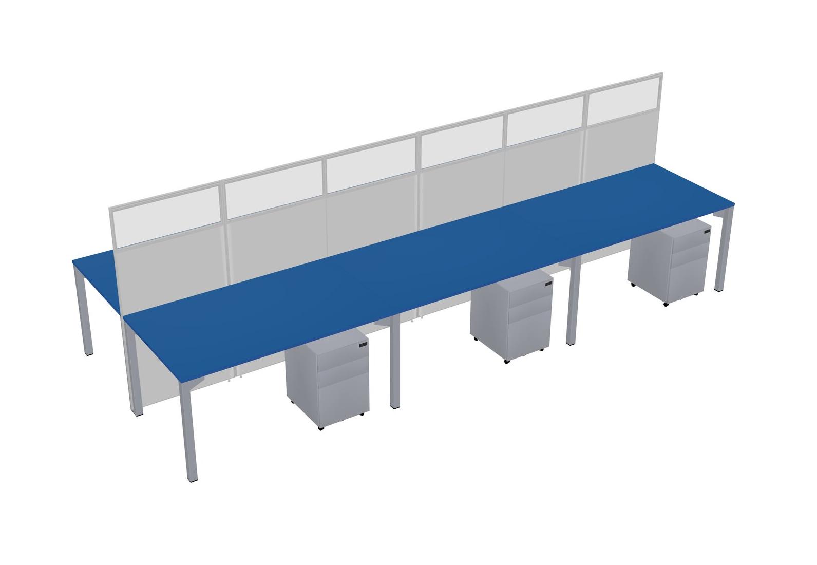 Prism Blue Shared Rectangular Office Cubicle Panel System With Mobile Drawers For 6 Persons