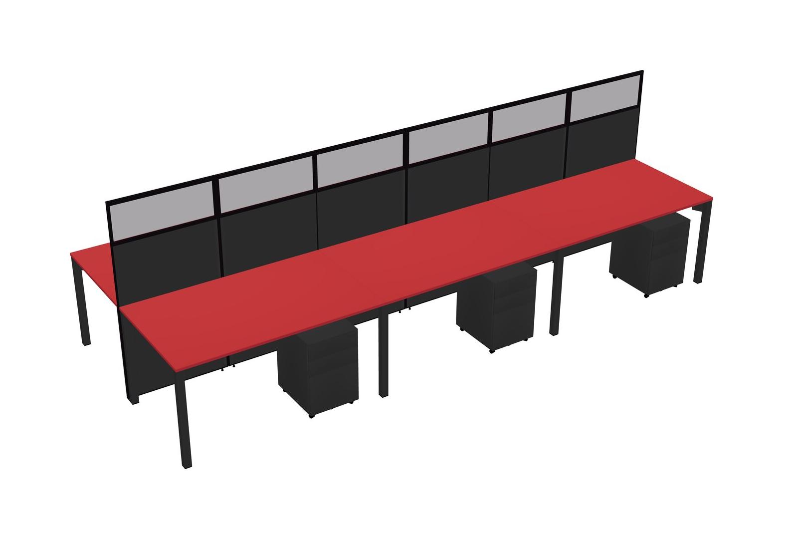 Prism Red Shared Rectangular Office Cubicle Panel System With Mobile Drawers For 6 Persons