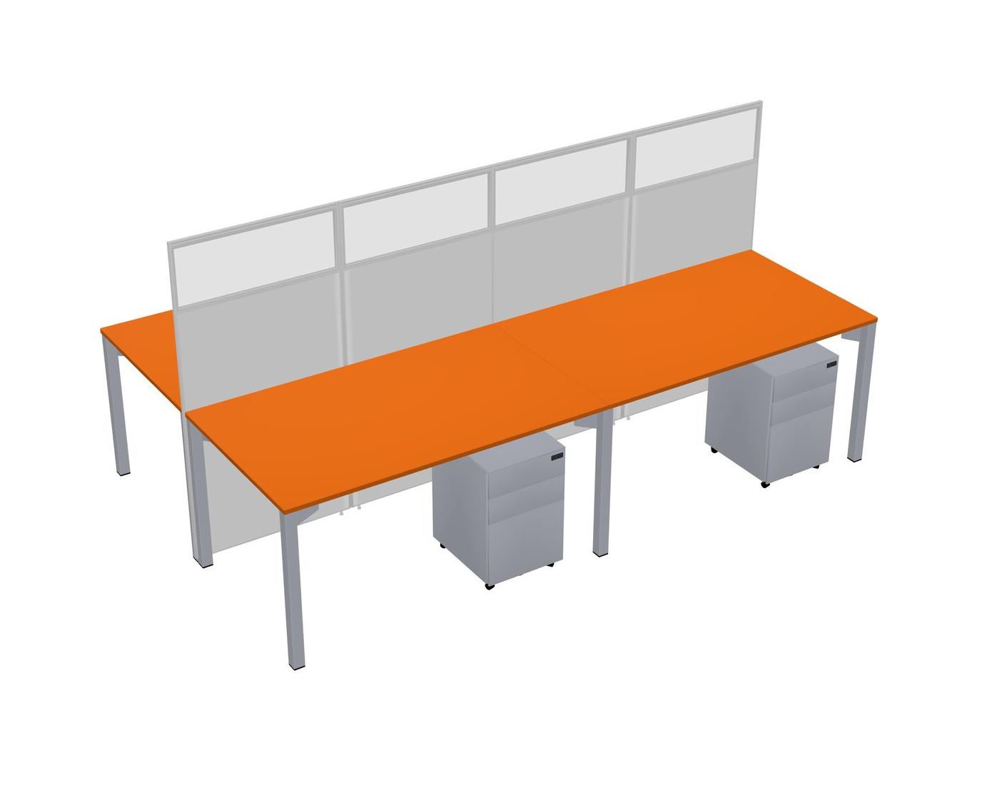 Orange Shared Rectangular Office Cubicle Panel System With Mobile Drawers For 4 Persons