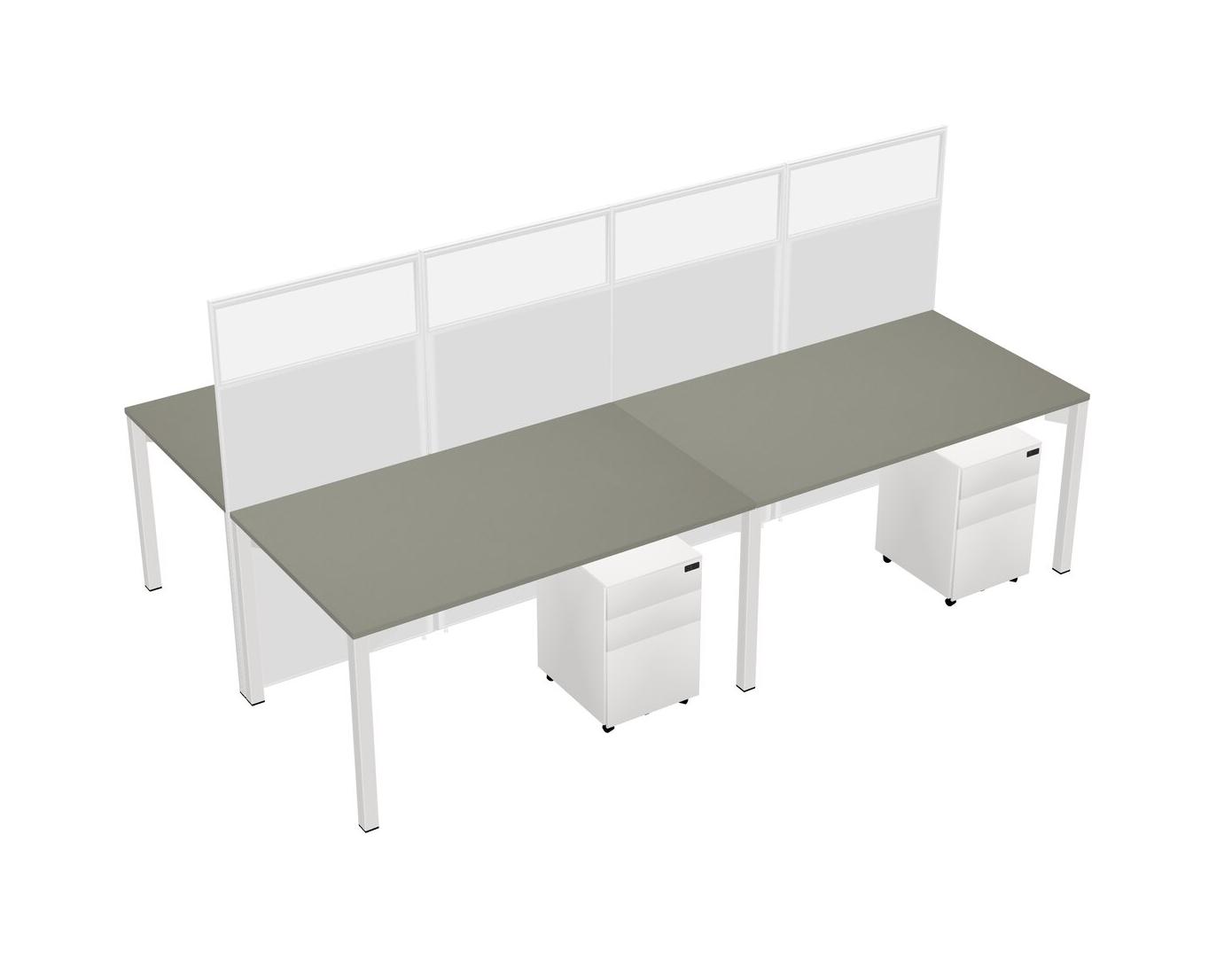 Grey Shadows Shared Rectangular Office Cubicle Panel System With Mobile Drawers For 4 Persons