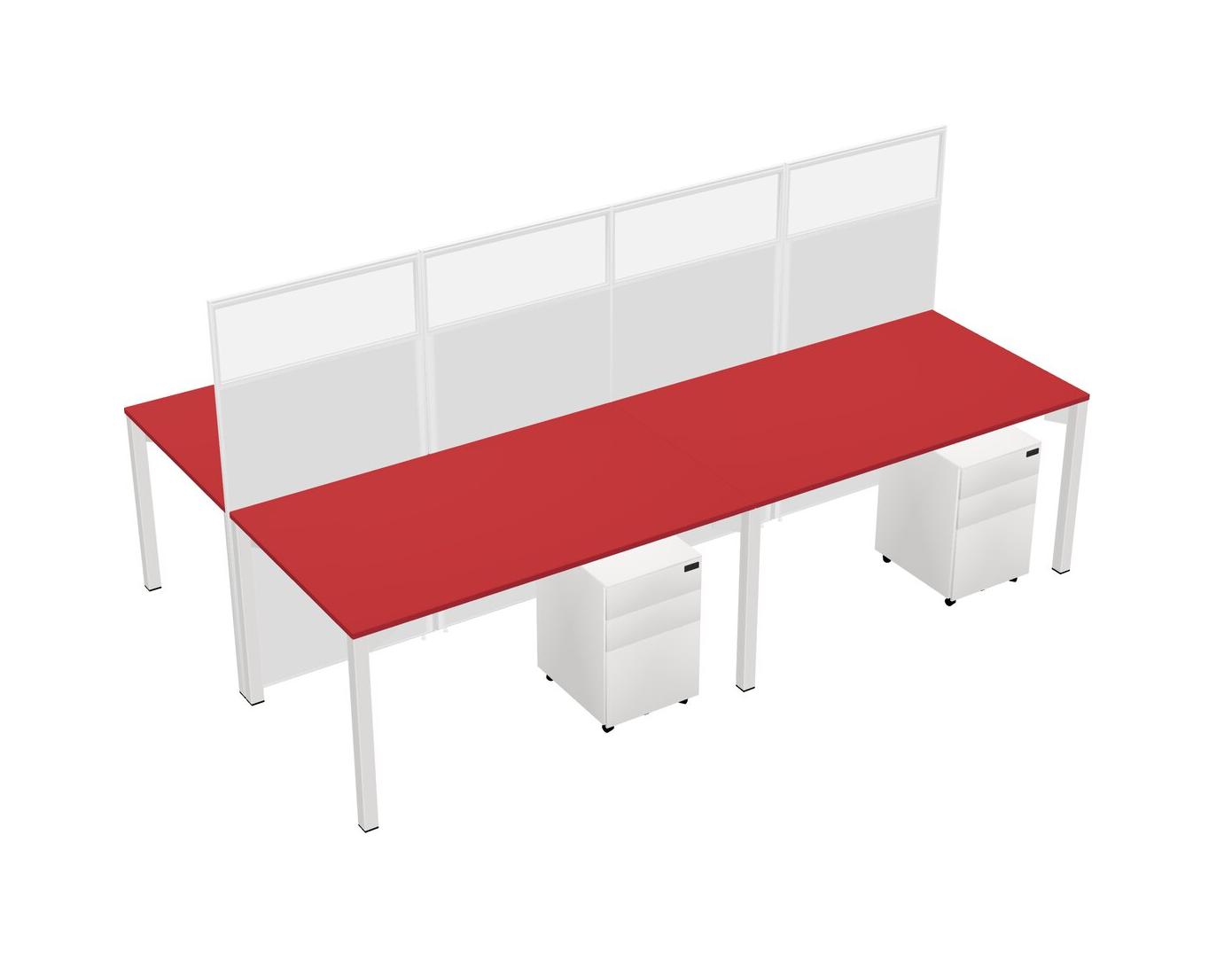 Prism Red Shared Rectangular Office Cubicle Panel System With Mobile Drawers For 4 Persons
