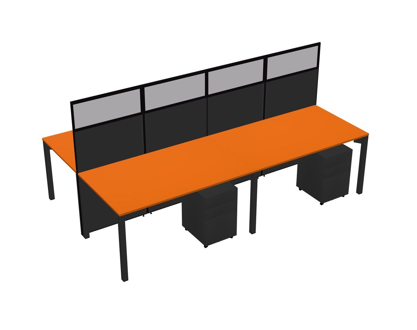 Orange Shared Rectangular Office Cubicle Panel System With Mobile Drawers For 4 Persons