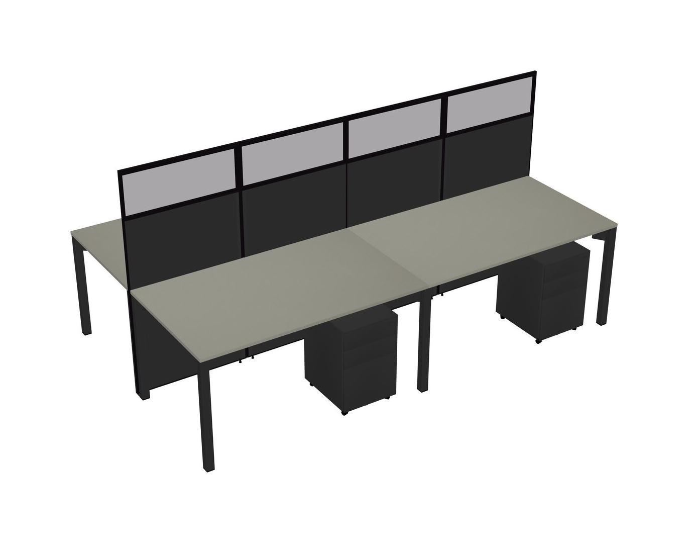 Grey Shadows Shared Rectangular Office Cubicle Panel System With Mobile Drawers For 4 Persons
