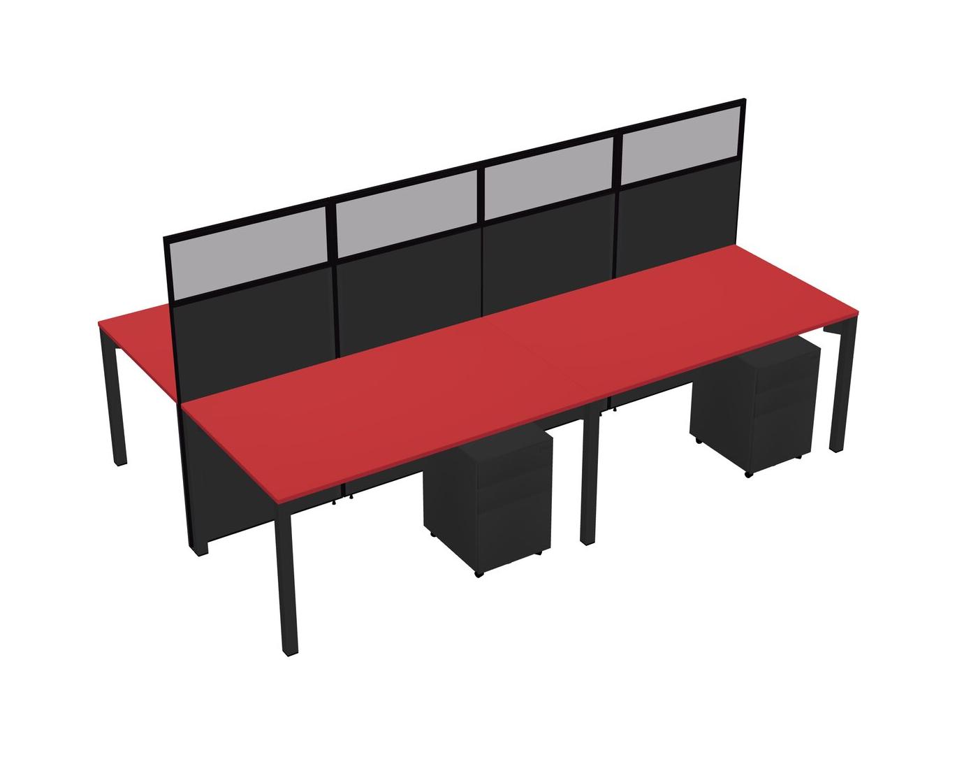 Prism Red Shared Rectangular Office Cubicle Panel System With Mobile Drawers For 4 Persons