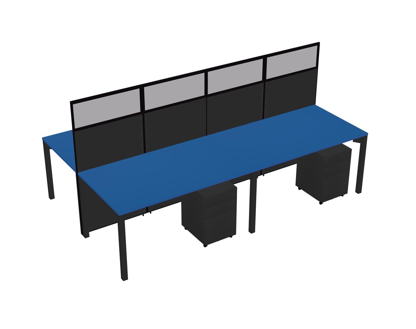 Prism Blue Shared Rectangular Office Cubicle Panel System With Mobile Drawers For 4 Persons