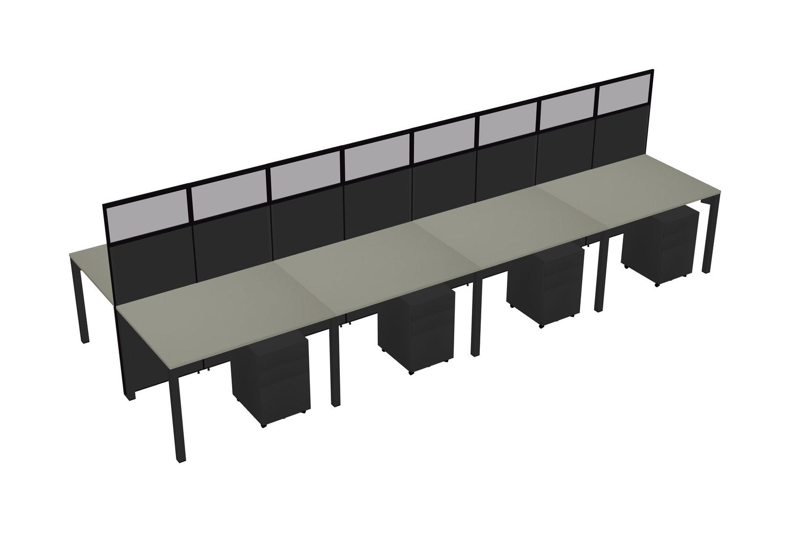 Grey Shadows Shared Rectangular Office Cubicle Panel System With Mobile Drawers For 8 Persons