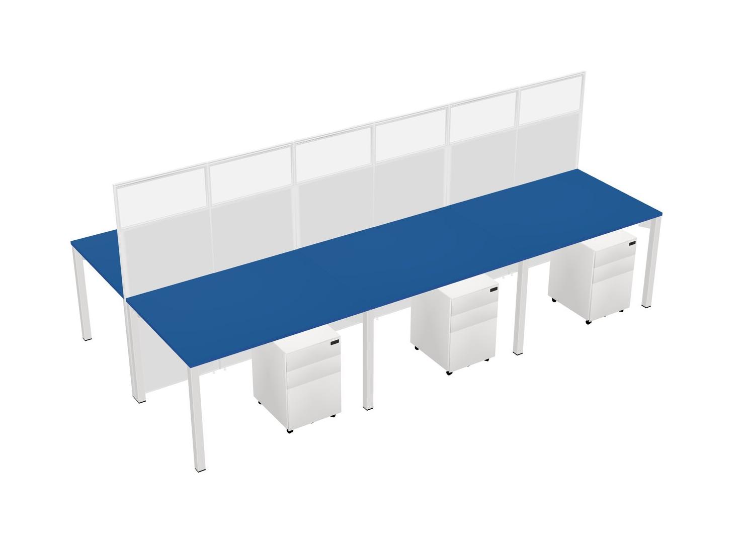 Prism Blue Shared Rectangular Office Cubicle Panel System With Mobile Drawers For 6 Persons