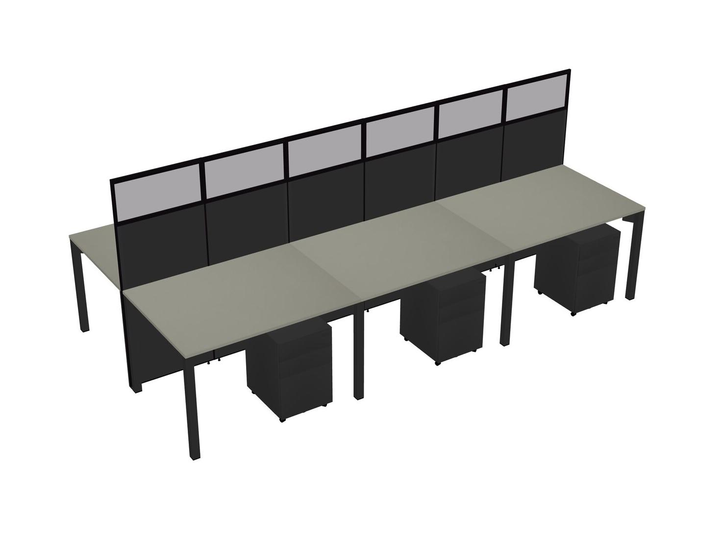 Grey Shadows Shared Rectangular Office Cubicle Panel System With Mobile Drawers For 6 Persons
