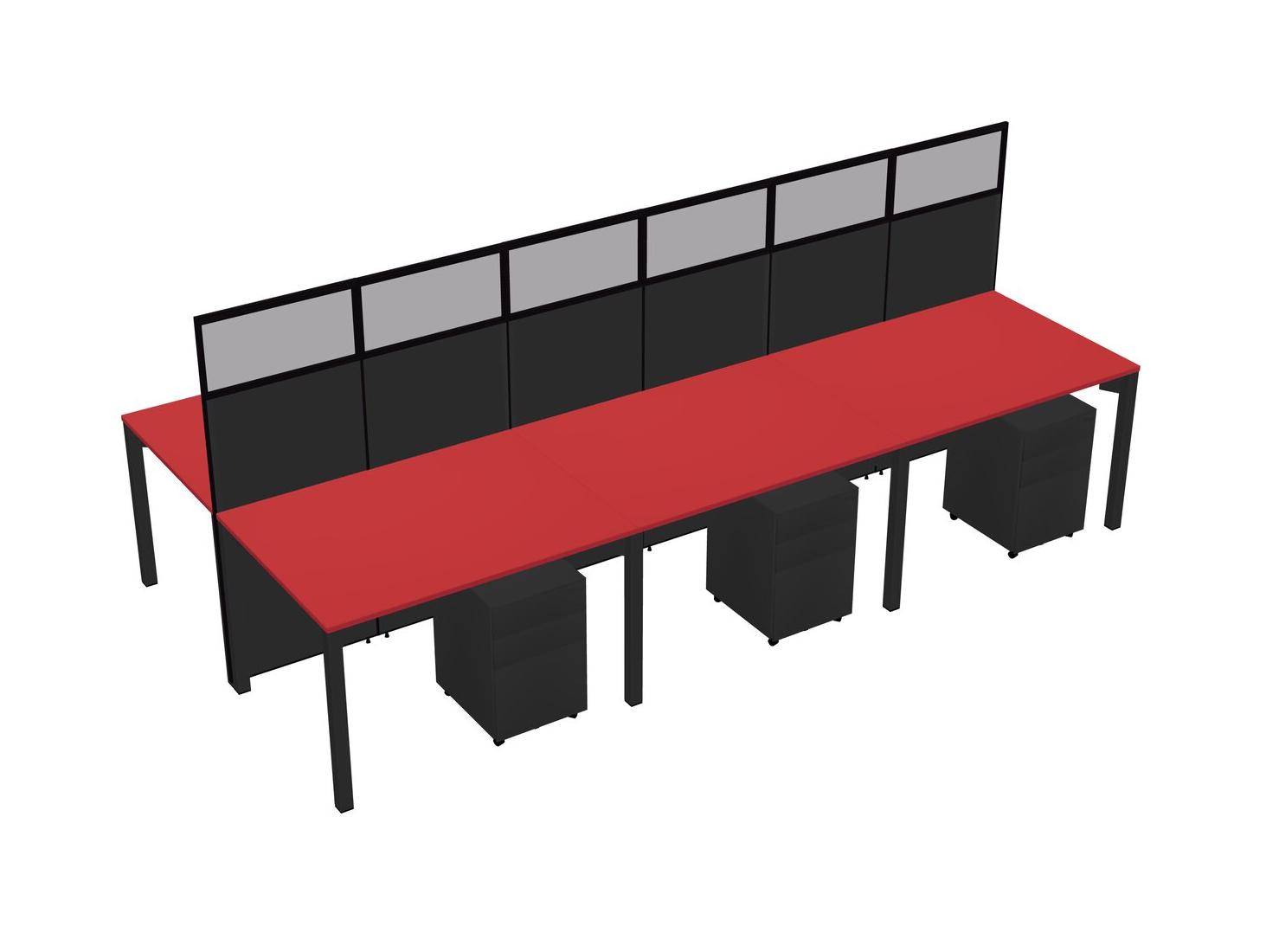 Prism Red Shared Rectangular Office Cubicle Panel System With Mobile Drawers For 6 Persons