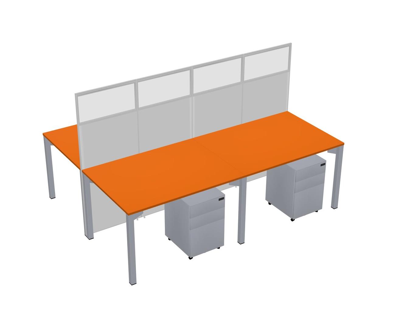 Orange Shared Rectangular Office Cubicle Panel System With Mobile Drawers For 4 Persons