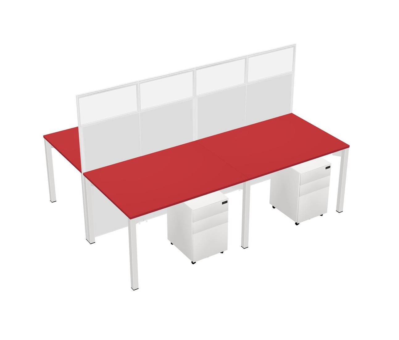 Prism Red Shared Rectangular Office Cubicle Panel System With Mobile Drawers For 4 Persons