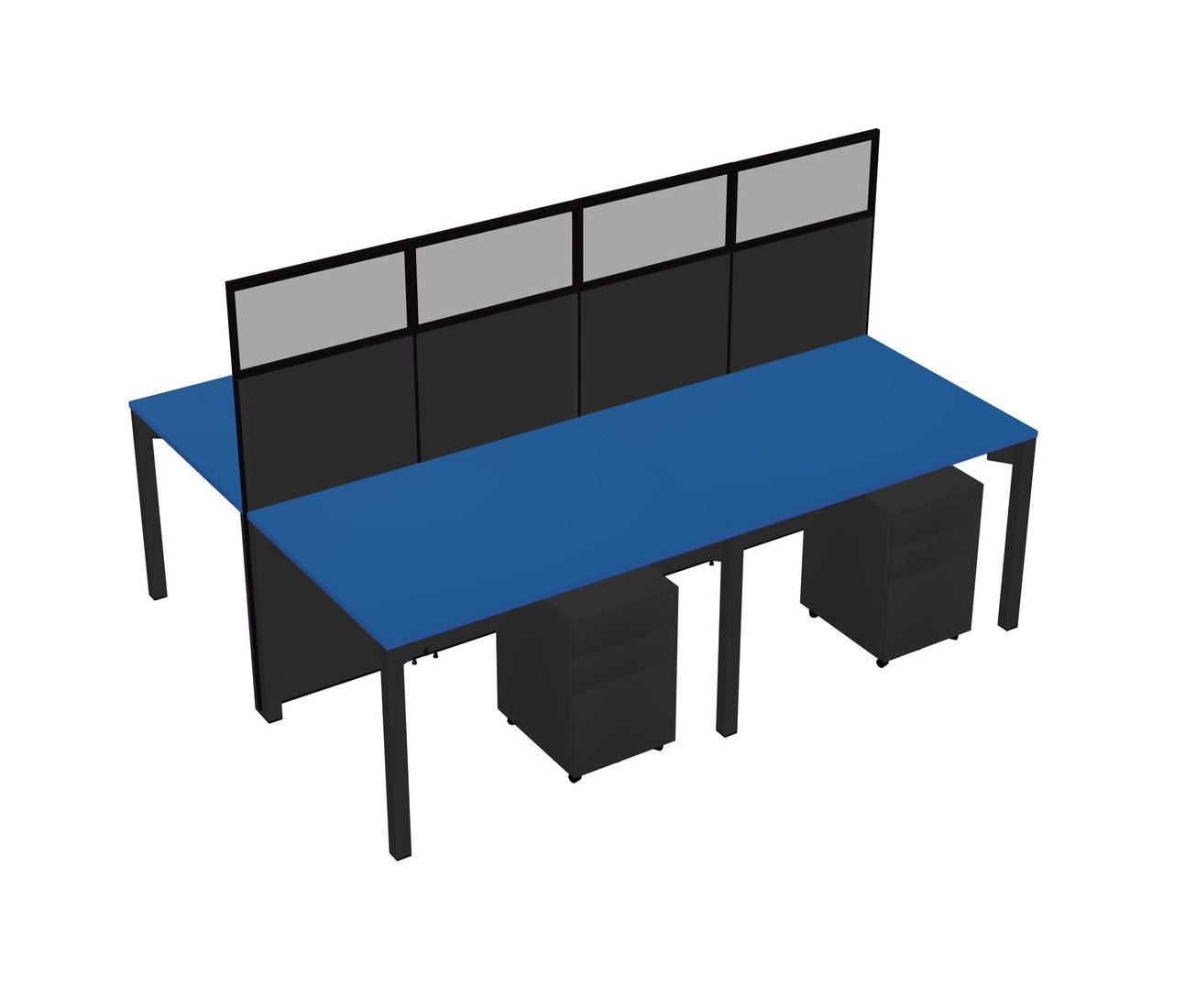 Prism Blue Shared Rectangular Office Cubicle Panel System With Mobile Drawers For 4 Persons