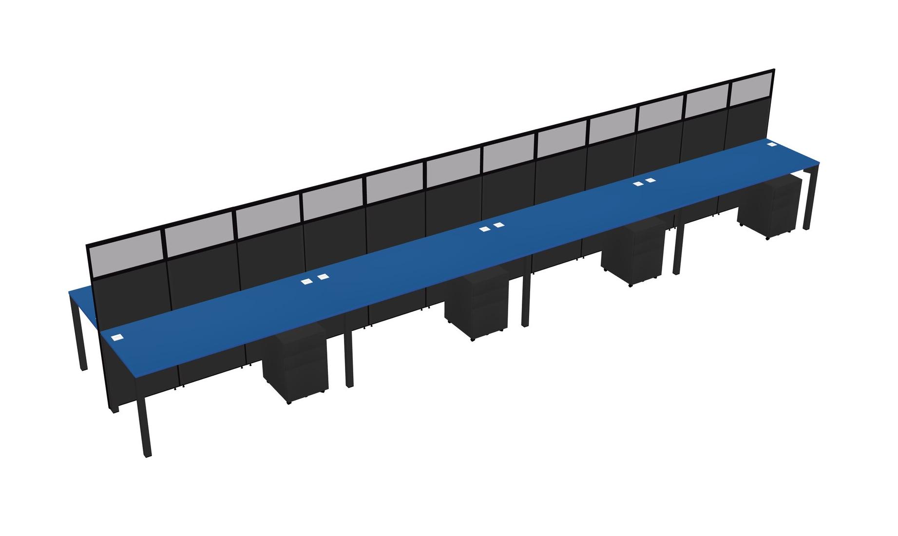 Prism Blue Shared Rectangular Office Cubicle Panel System With Mobile Drawers For 8 Persons
