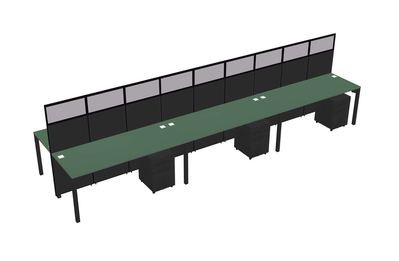 Green Shared Rectangular Office Cubicle Panel System With Mobile Drawers For 6 Persons