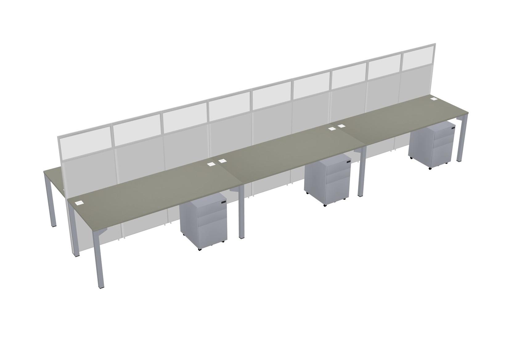 Grey Shadows Shared Rectangular Office Cubicle Panel System With Mobile Drawers For 6 Persons