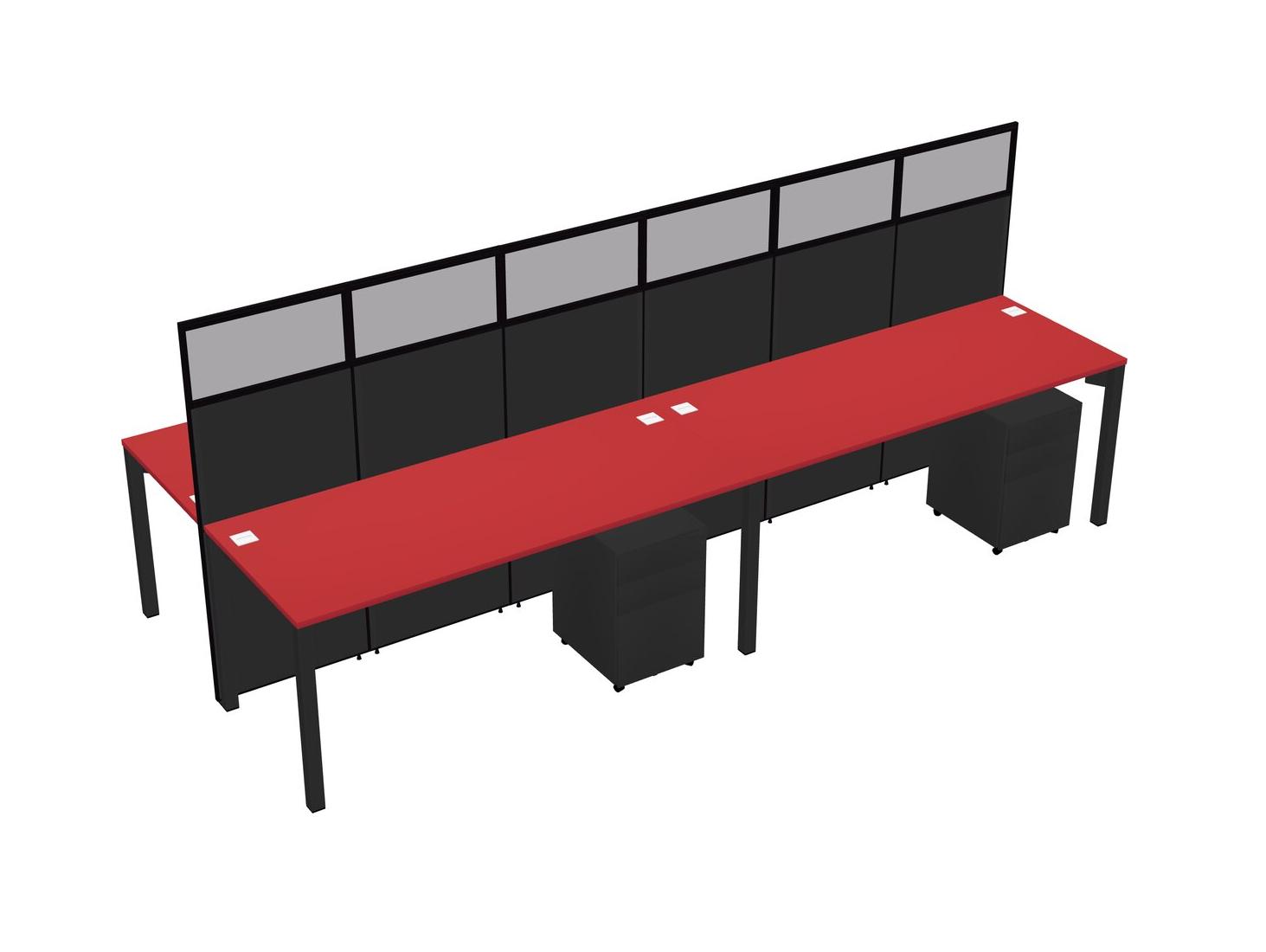 Prism Red Shared Rectangular Office Cubicle Panel System With Mobile Drawers For 4 Persons