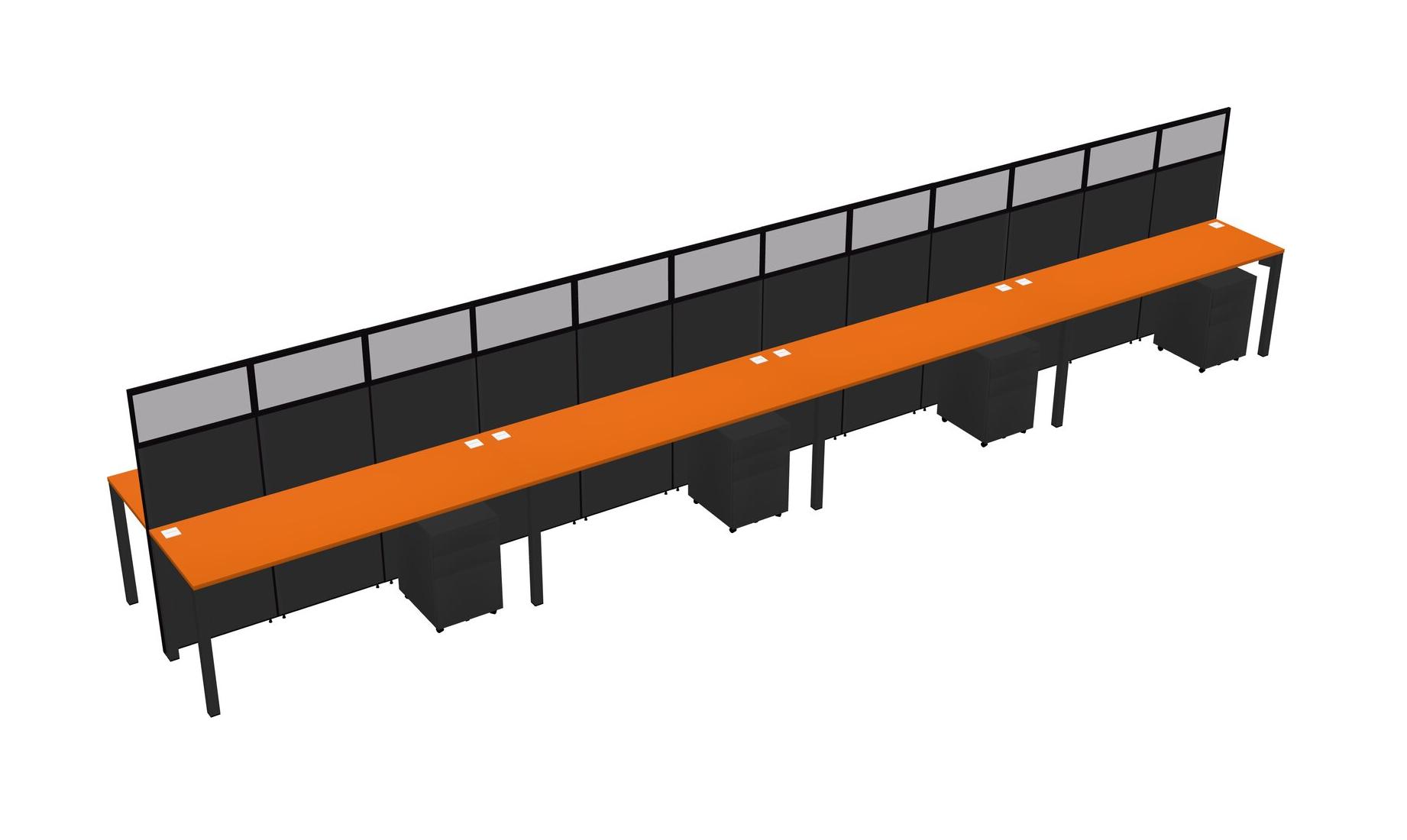 Orange Shared Rectangular Office Cubicle Panel System With Mobile Drawers For 8 Persons