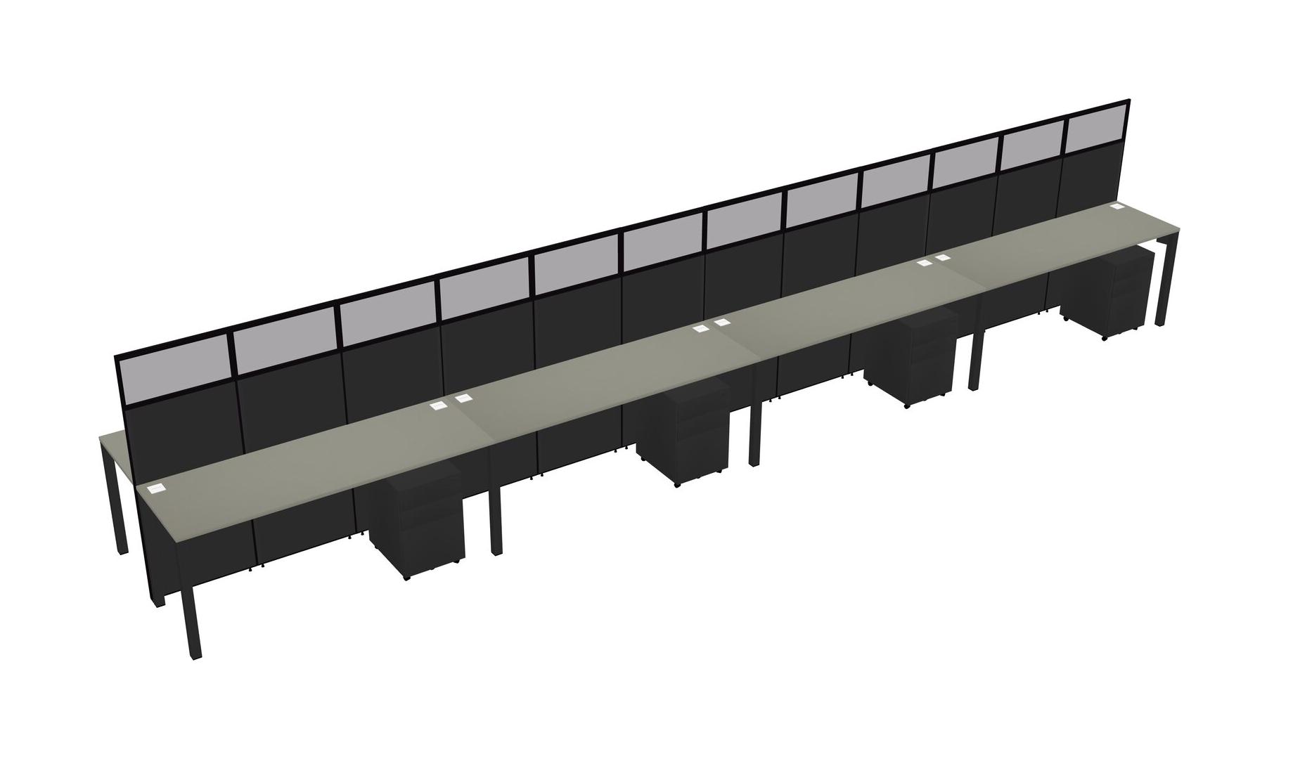 Grey Shadows Shared Rectangular Office Cubicle Panel System With Mobile Drawers For 8 Persons
