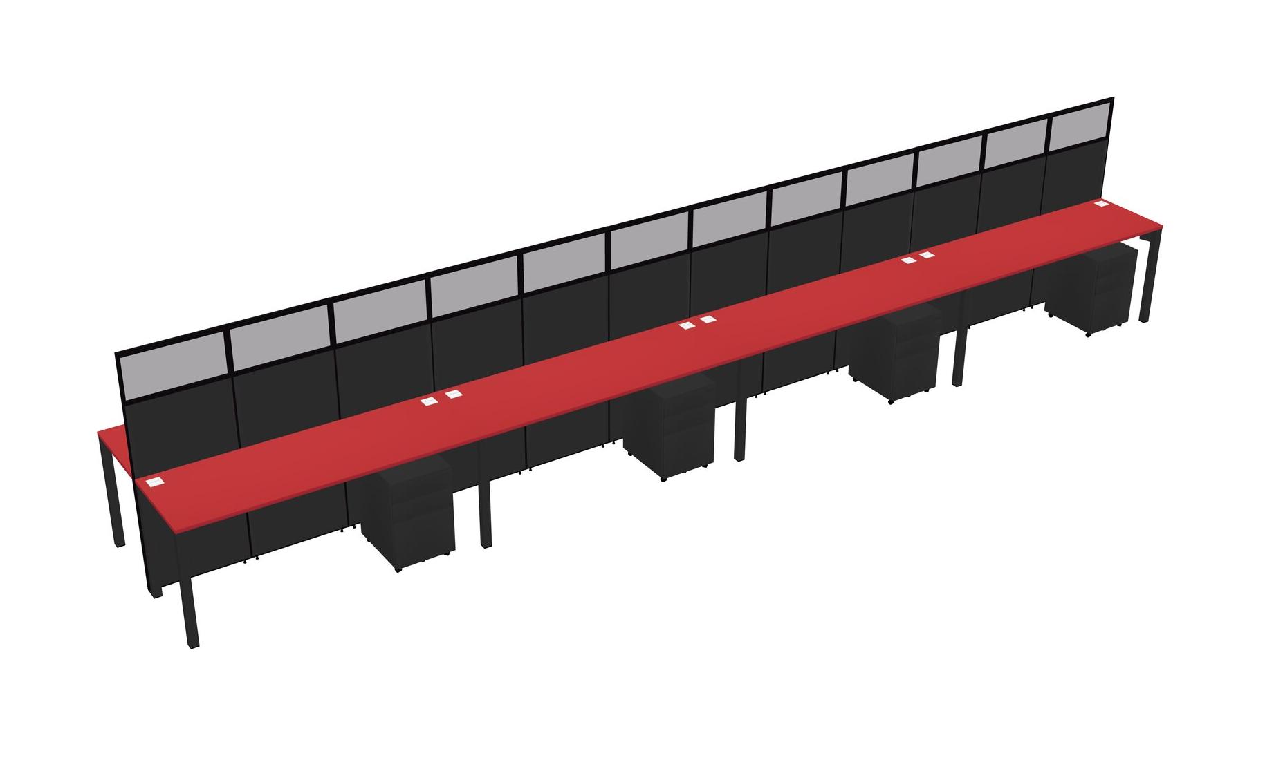 Prism Red Shared Rectangular Office Cubicle Panel System With Mobile Drawers For 8 Persons