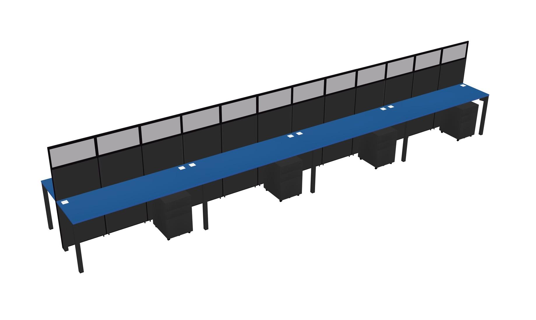 Prism Blue Shared Rectangular Office Cubicle Panel System With Mobile Drawers For 8 Persons