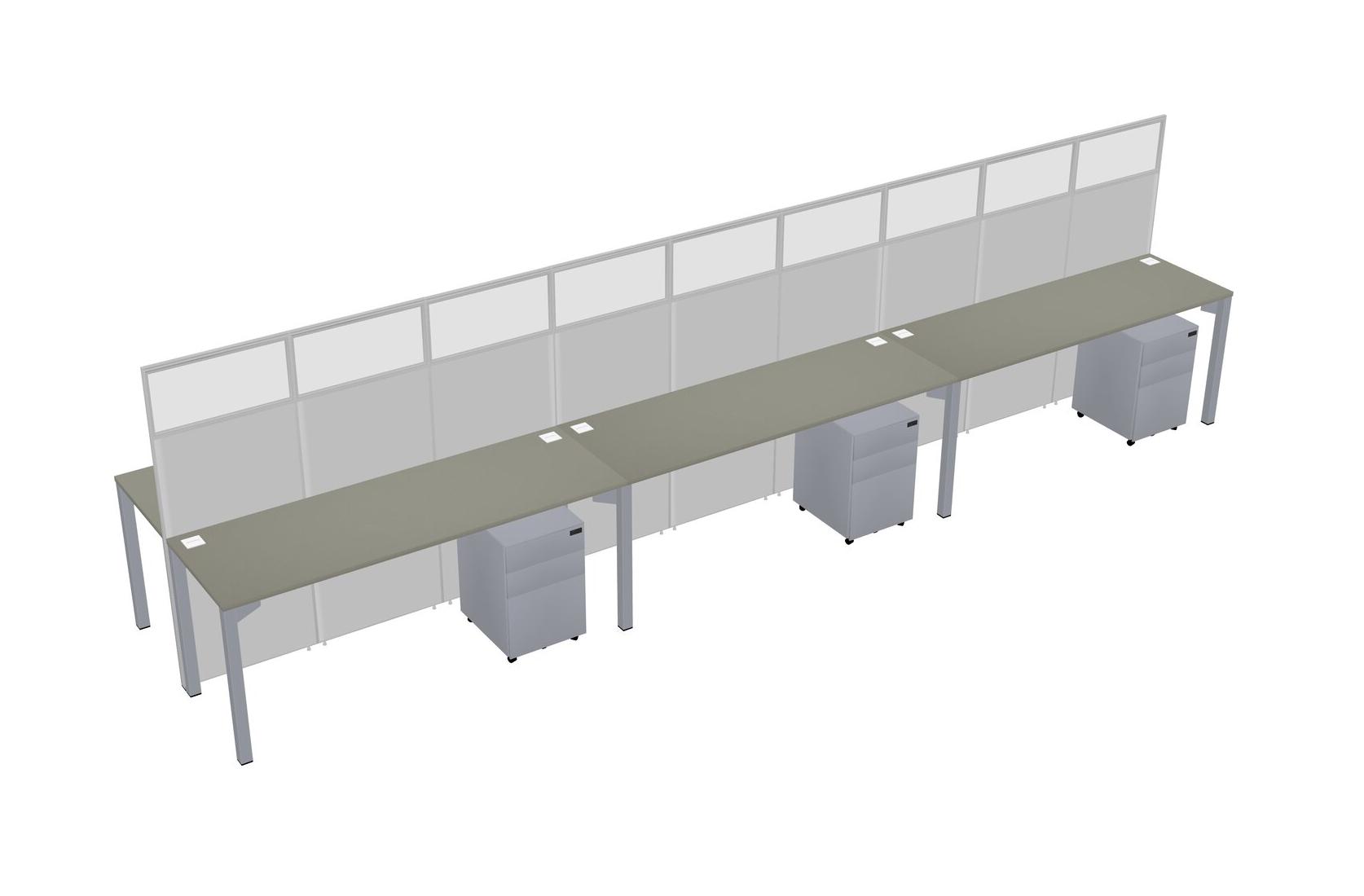 Grey Shadows Shared Rectangular Office Cubicle Panel System With Mobile Drawers For 6 Persons