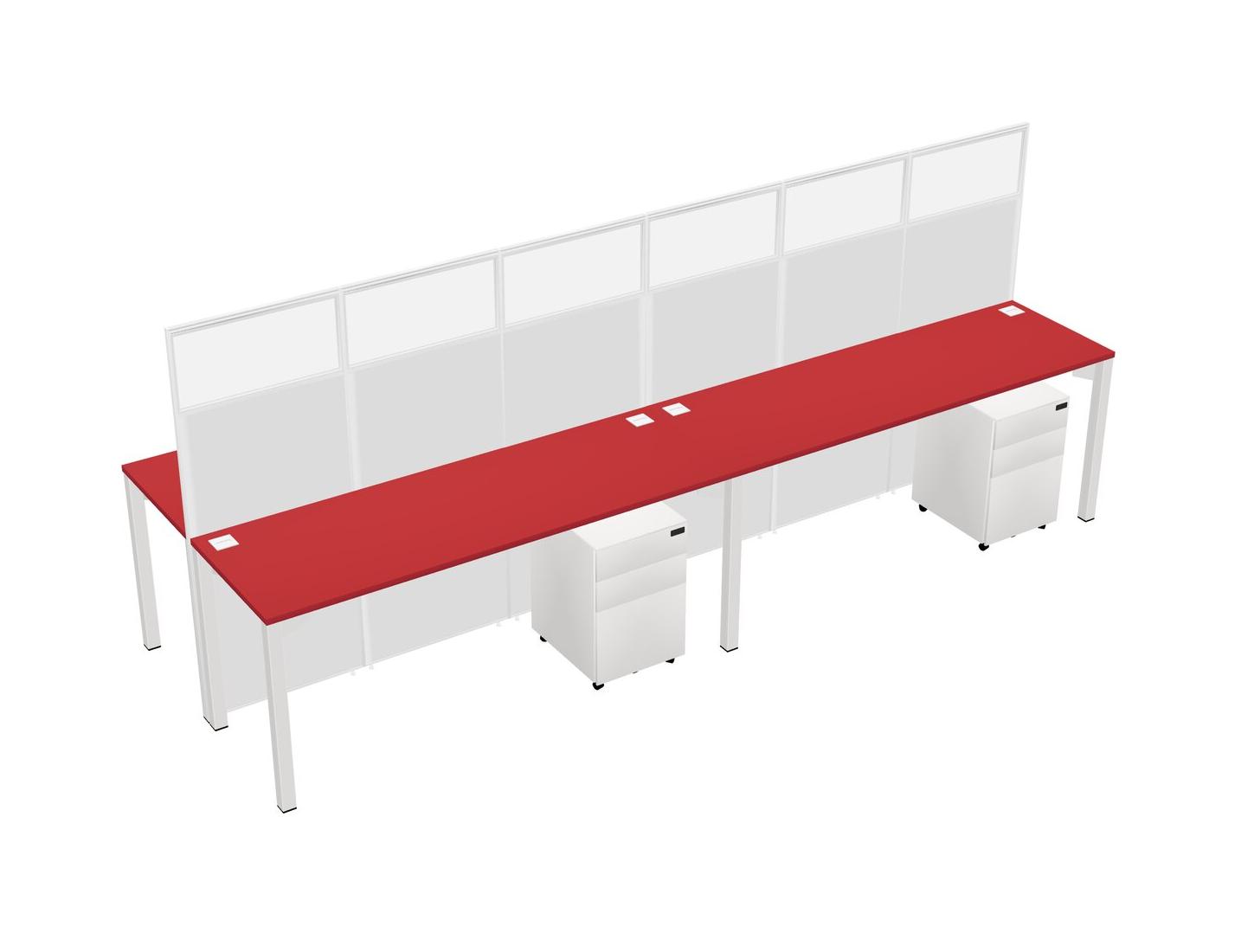 Prism Red Shared Rectangular Office Cubicle Panel System With Mobile Drawers For 4 Persons
