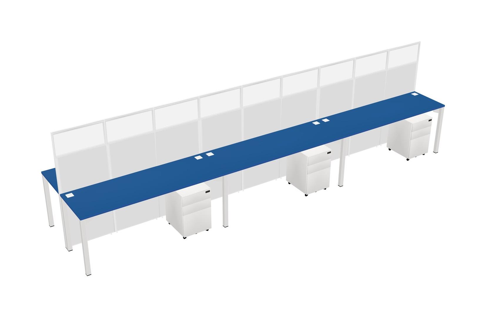 Prism Blue Shared Rectangular Office Cubicle Panel System With Mobile Drawers For 6 Persons