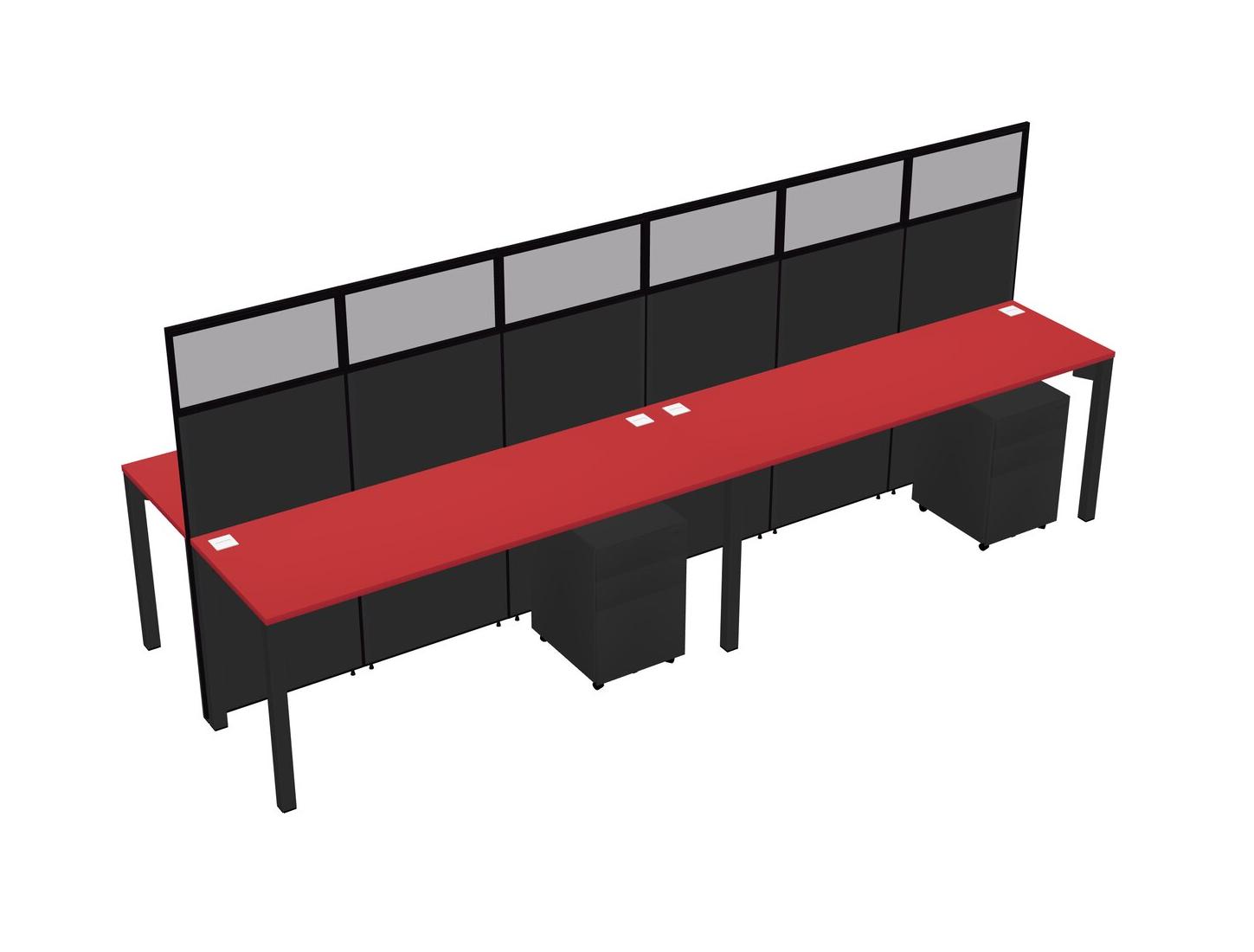 Prism Red Shared Rectangular Office Cubicle Panel System With Mobile Drawers For 4 Persons