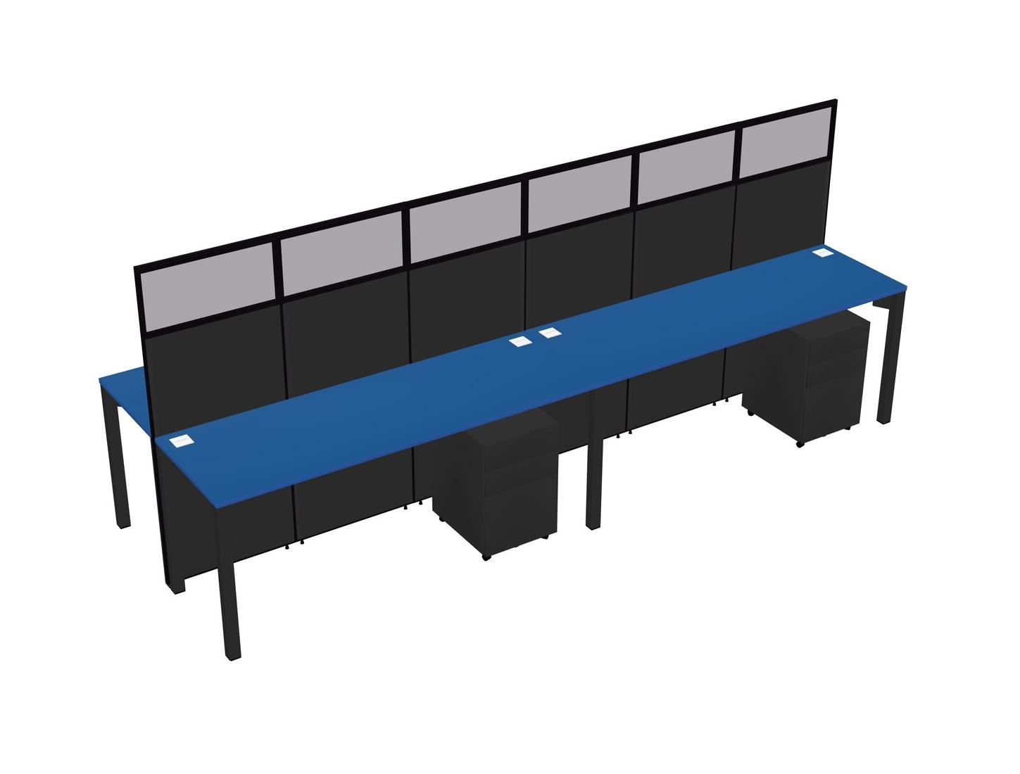 Prism Blue Shared Rectangular Office Cubicle Panel System With Mobile Drawers For 4 Persons