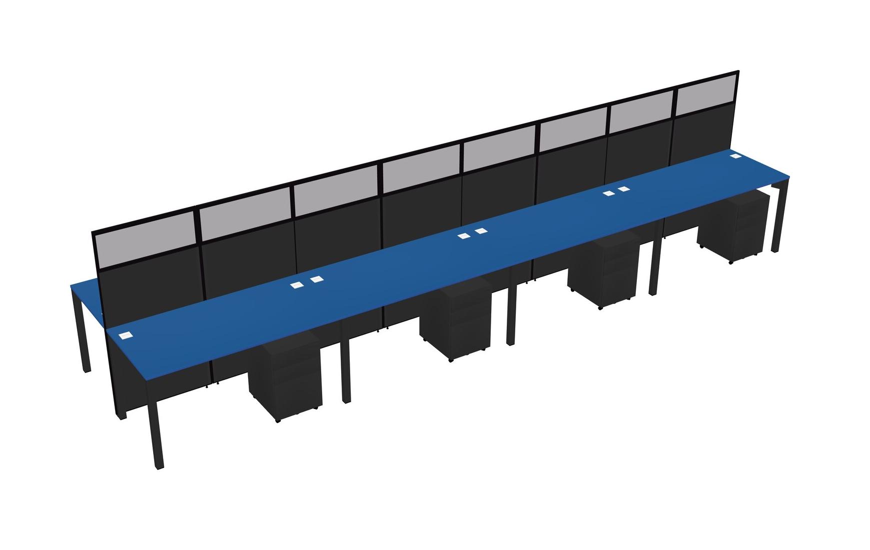 Prism Blue Shared Rectangular Office Cubicle Panel System With Mobile Drawers For 8 Persons
