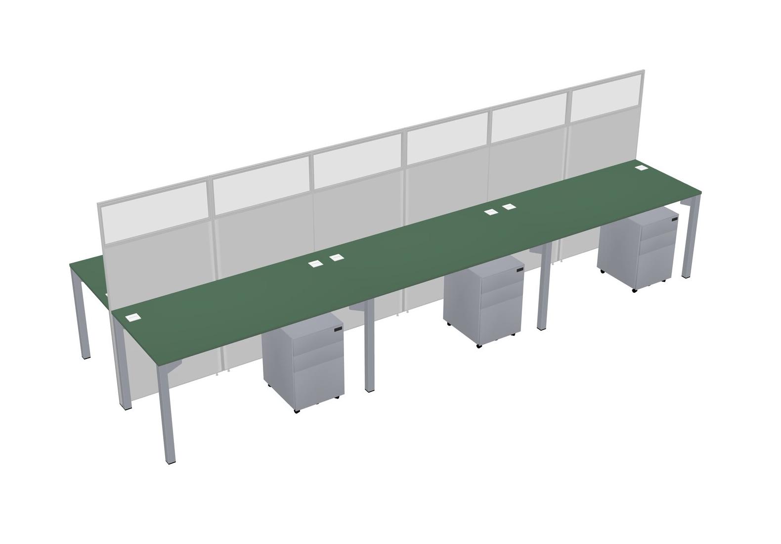 Green Shared Rectangular Office Cubicle Panel System With Mobile Drawers For 6 Persons