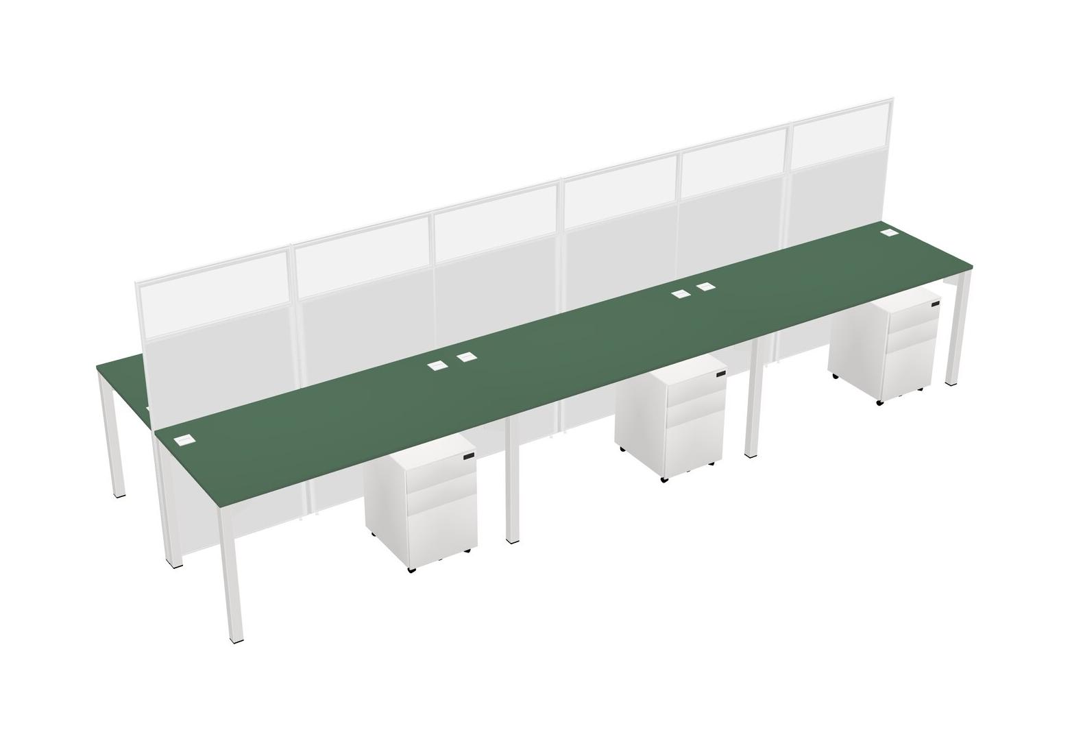 Green Shared Rectangular Office Cubicle Panel System With Mobile Drawers For 6 Persons