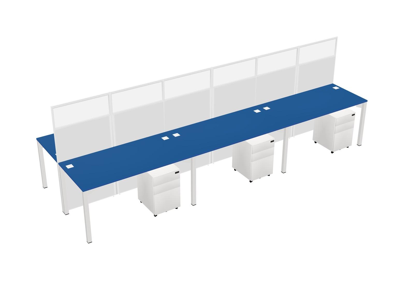 Prism Blue Shared Rectangular Office Cubicle Panel System With Mobile Drawers For 6 Persons